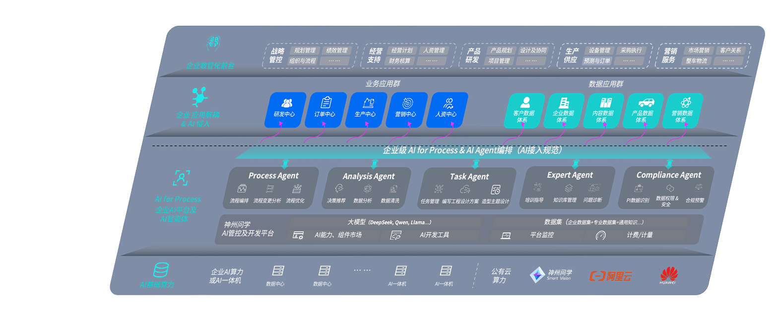 新时代问学智车解决方案是一套基于AI技术的汽车行业智能化系统,,,,覆盖从底层算力到顶层AI应用的全栈方案。。方案由算力层、、模型层和应用层组成:算力层,,方案支持多种一体机配置,,,具备云端灵活部署、、多云适配以及动态优化计算资源的能力;模型层,,,新时代问学平台版提供了企业级AI应用一站式构建与管理平台,,,支持基于后训练强化技术的汽车企业专属模型的训练、、、评测和运营;应用层,,,,新时代问学DeepSeek版提供包括超级员工、、、智能招采、、、智能营销、、智能客服、、、、AI for BI等一系列解决方案,,,,可助力汽车行业实现数字化转型,,让管理更智能、、响应更敏捷。。。。